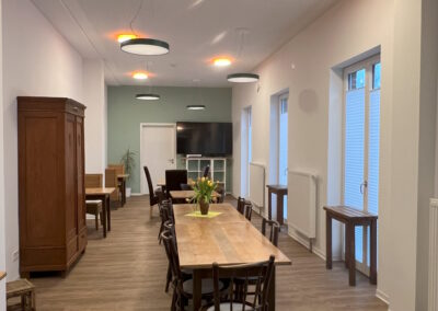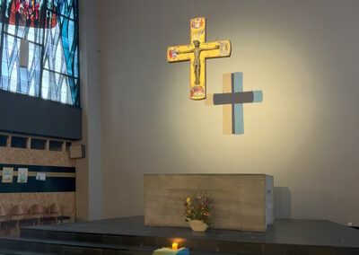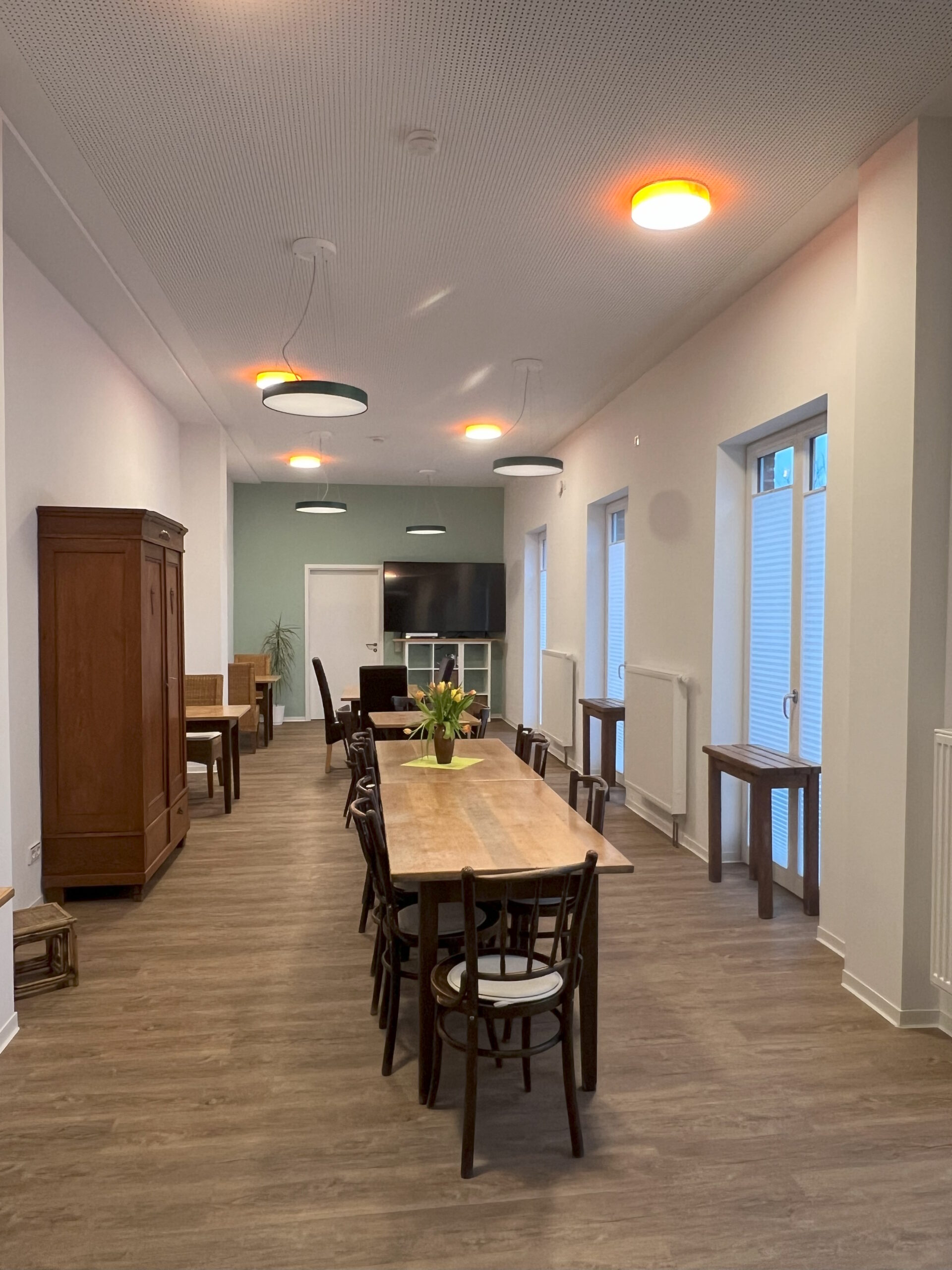 Der Fokus der Räumlichkeiten liegt auf diesen sozialen Projekten, jedoch stellen sie mit der zentralen Beleuchtung auf das Jesuskreuz und die Bibel sicher, dass jeder, der es mitbekommen möchte, merkt: Wir befinden uns in einer Kirche.