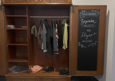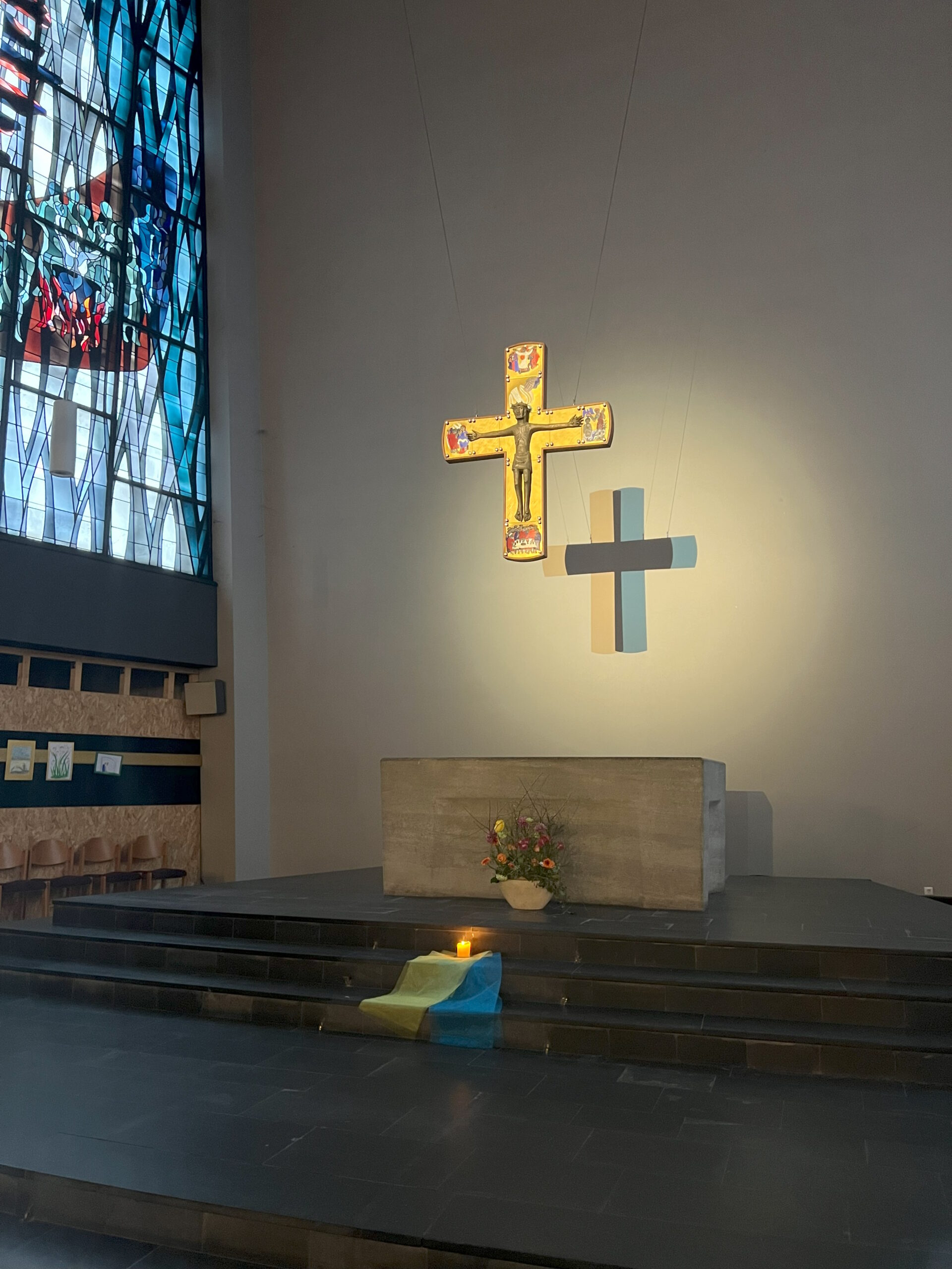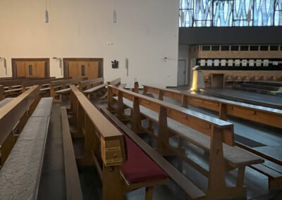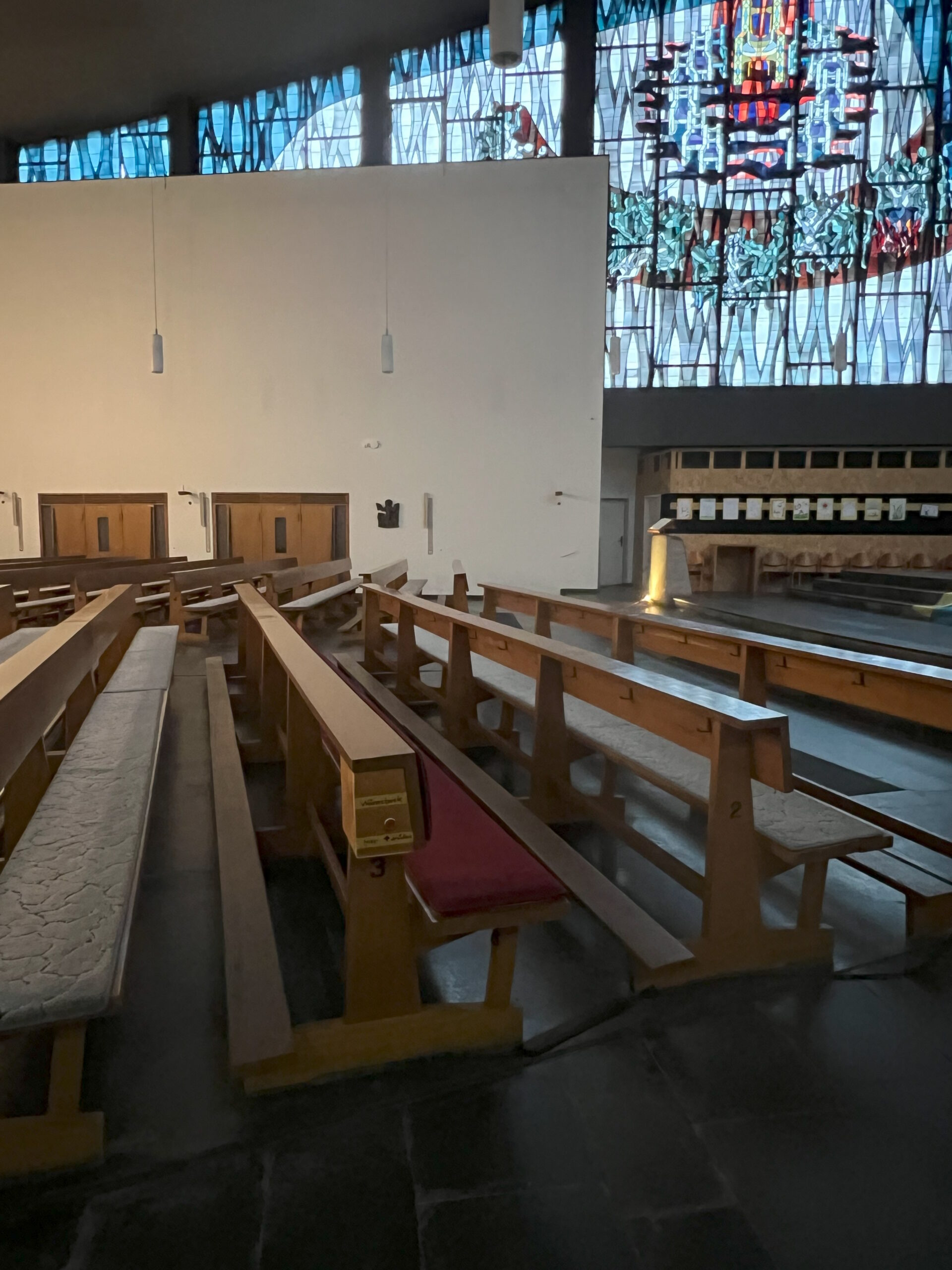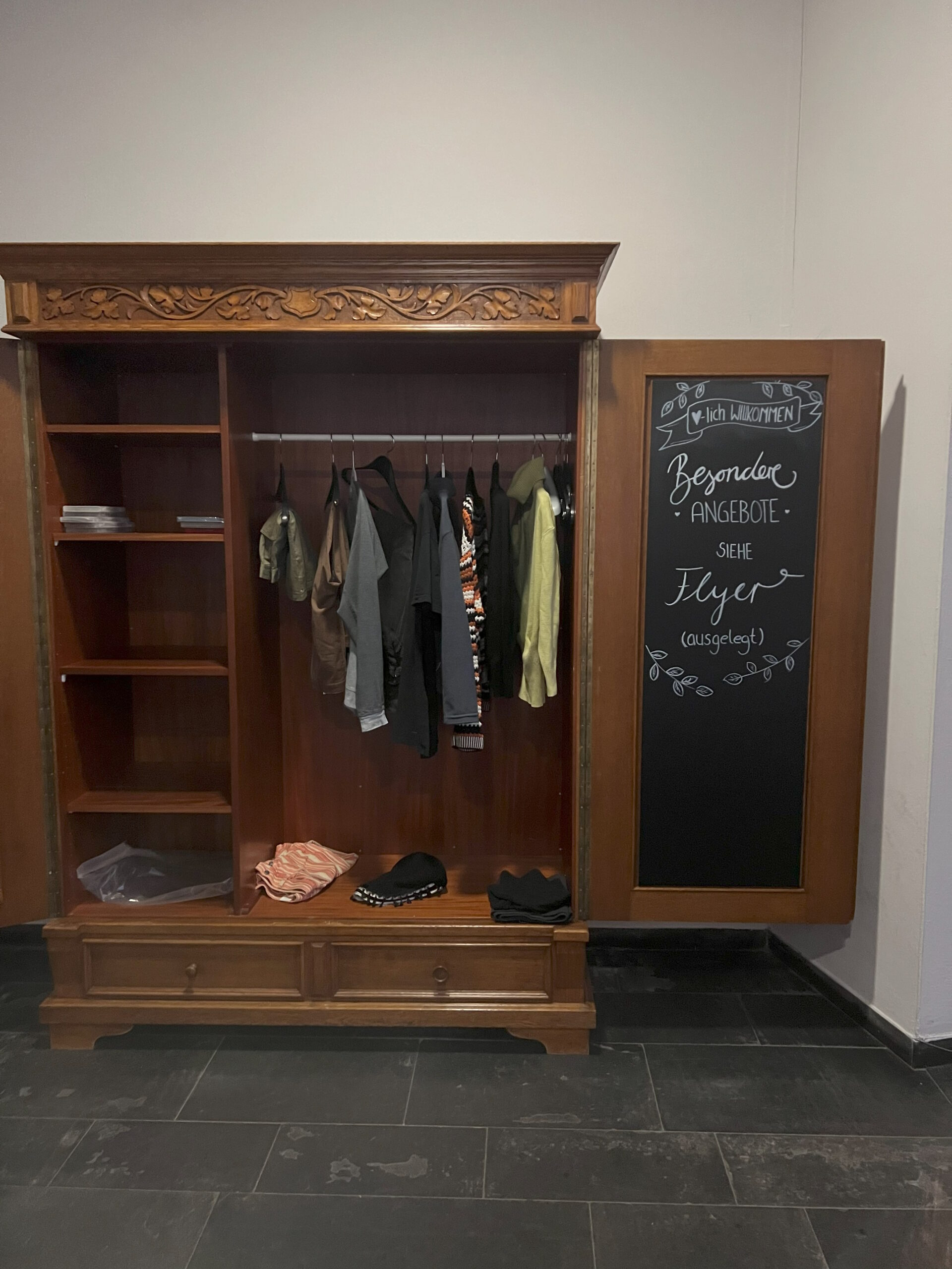 Wir durften im Rahmen unserer Aktion auch eine Führung mit Schwester Bettina Rupp durch die Räumlichkeiten der Kirche machen. Dabei erfuhren wir von weiteren sozialen Angeboten, die die Steyler Missionsschwestern in ihrer Kirche und den angrenzenden Räumen bereitstellen. So gibt es zum Beispiel einen Flohmarkt auf der Orgelempore, der dreimal pro Woche stattfindet. Hier können Menschen Second-Hand-Kleidung tauschen – pro Woche kommen rund 100 Kleidungsstücke zusammen.