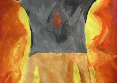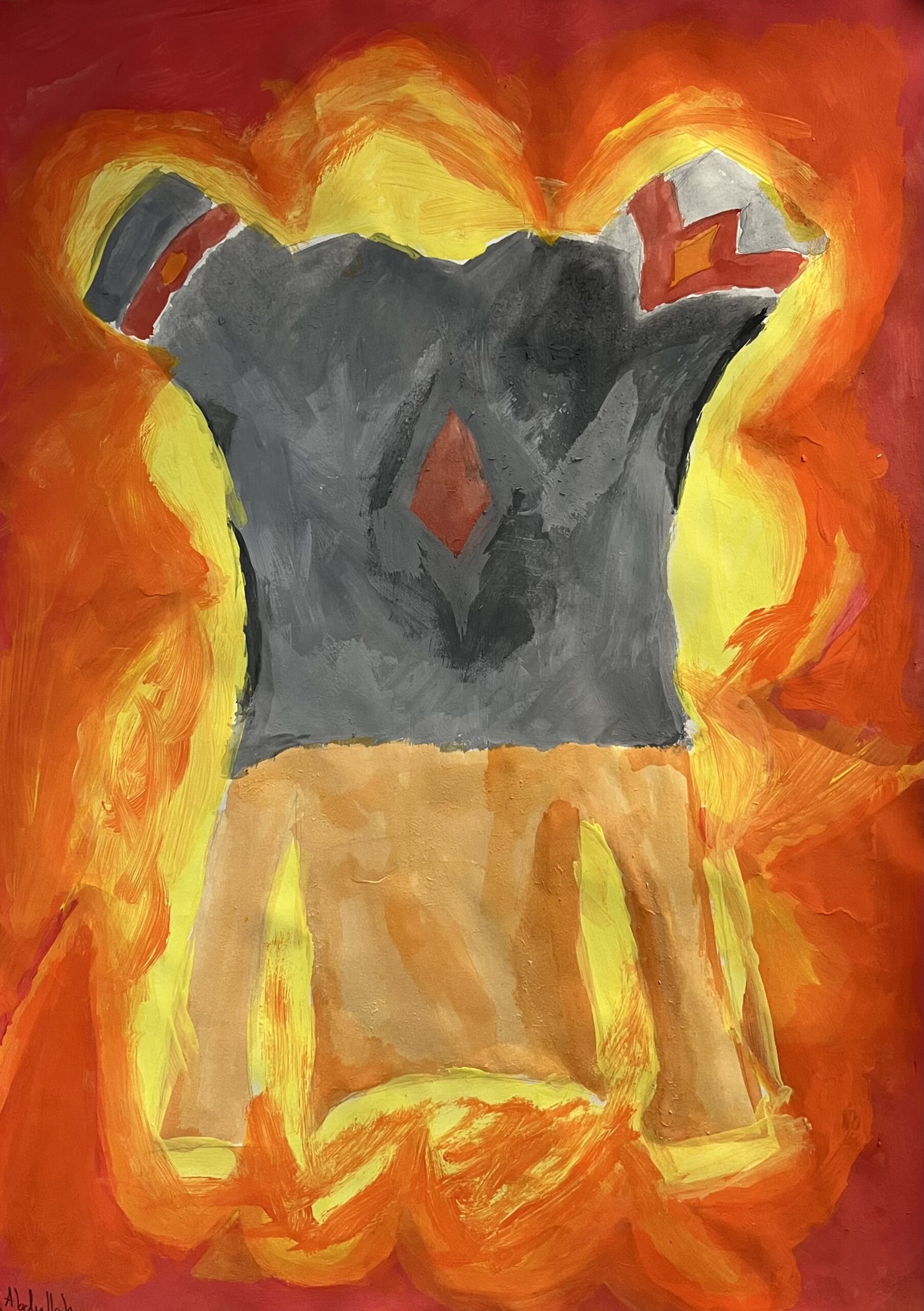 Die Kunstkurse der E-Phase von Frau Ströter haben im ersten Halbjahr des Schuljahres 2025/26 zum Thema „Verwendung grundlegender Ausdrucksmittel der Malerei (Komposition, Farbe, Form)“ gearbeitet und sich dabei auf Farbe und Symbolik fokussiert.