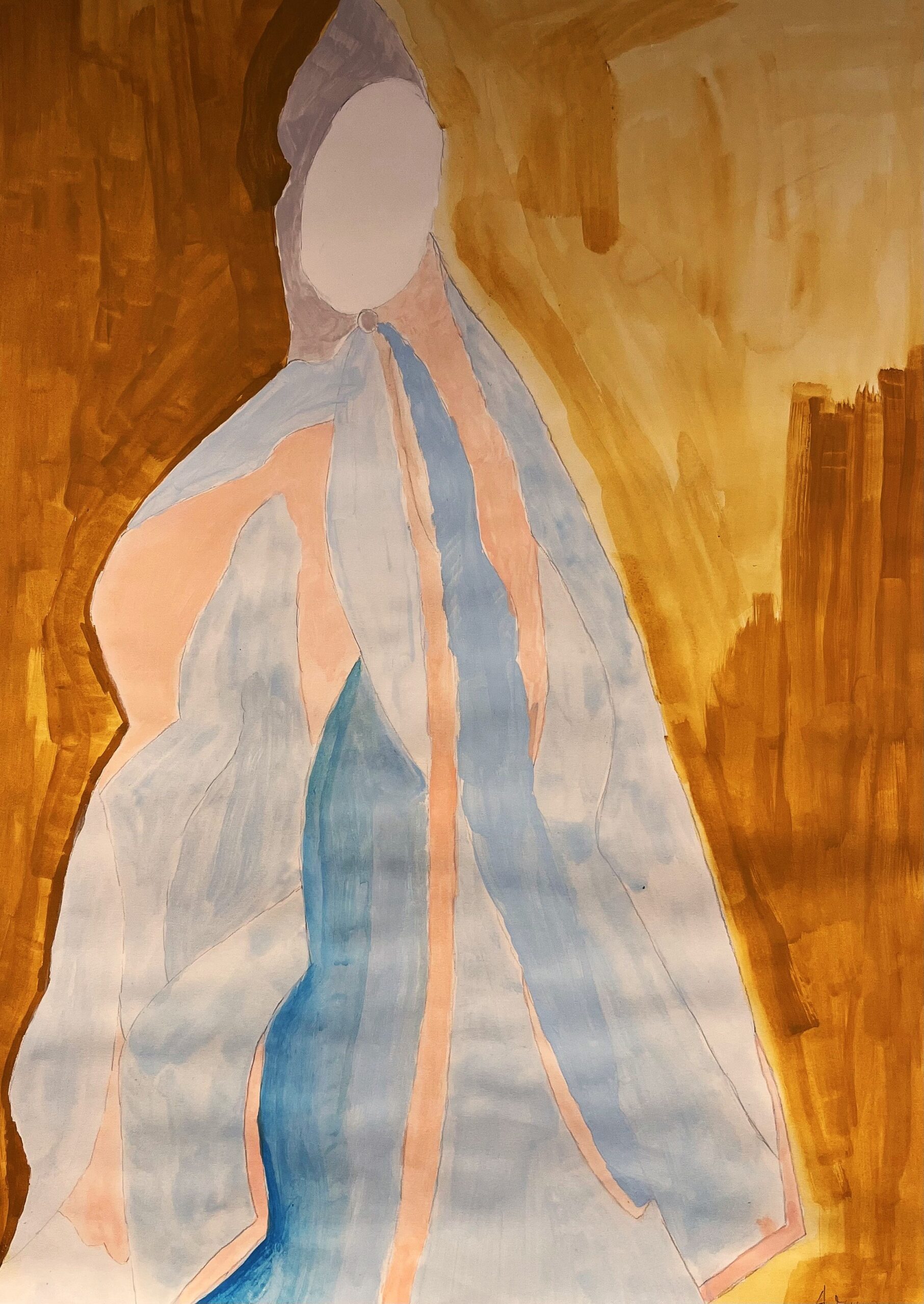 Entwickeln Sie eine eigene Bildidee zum Thema „Schutzmantel“ in Anlehnung an den blauen Schutzmantel der Maria, der in der christlichen Symbolik das Göttliche und Himmlische im Irdischen darstellt sowie die Farbe des Glaubens und der Treue verdeutlicht.