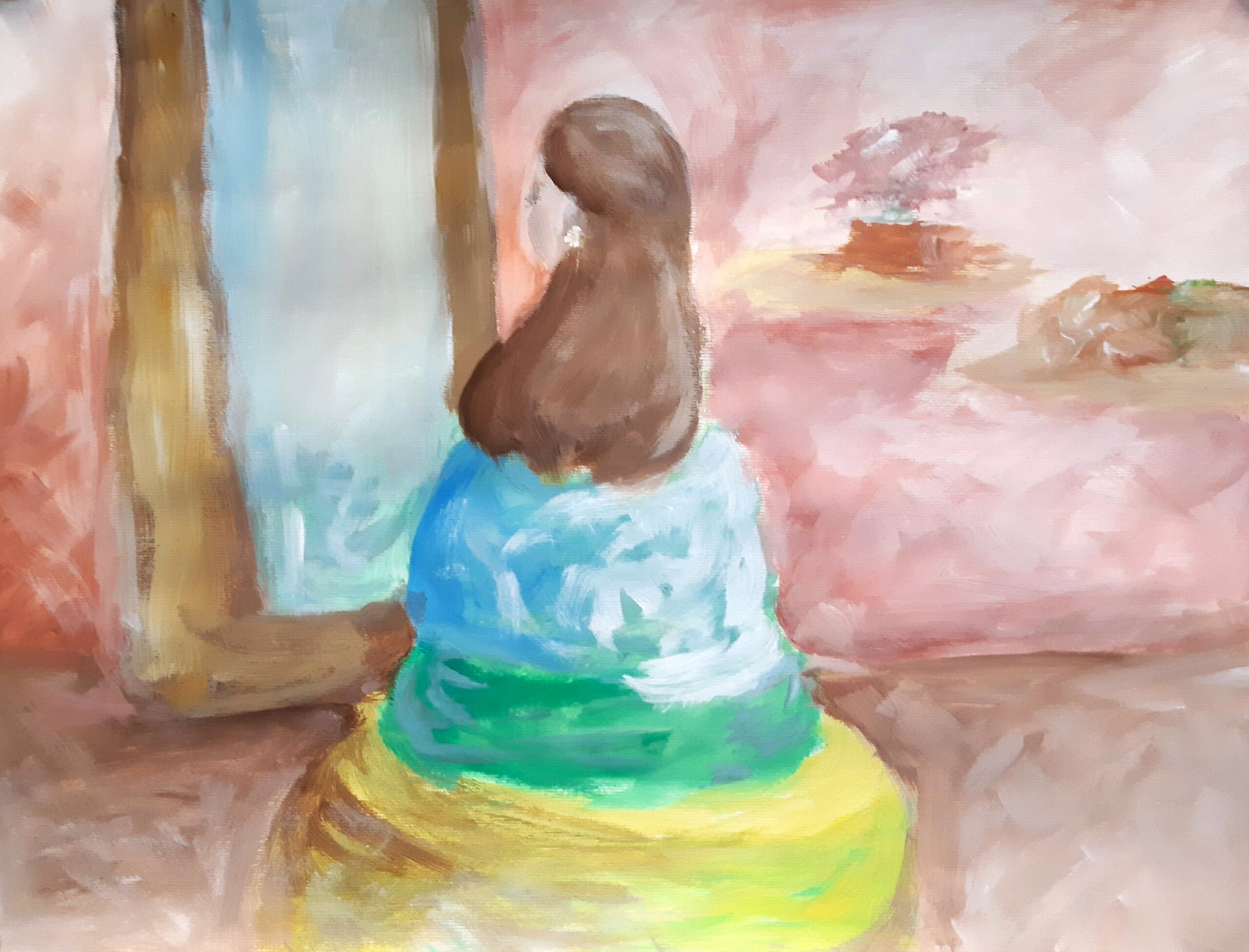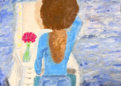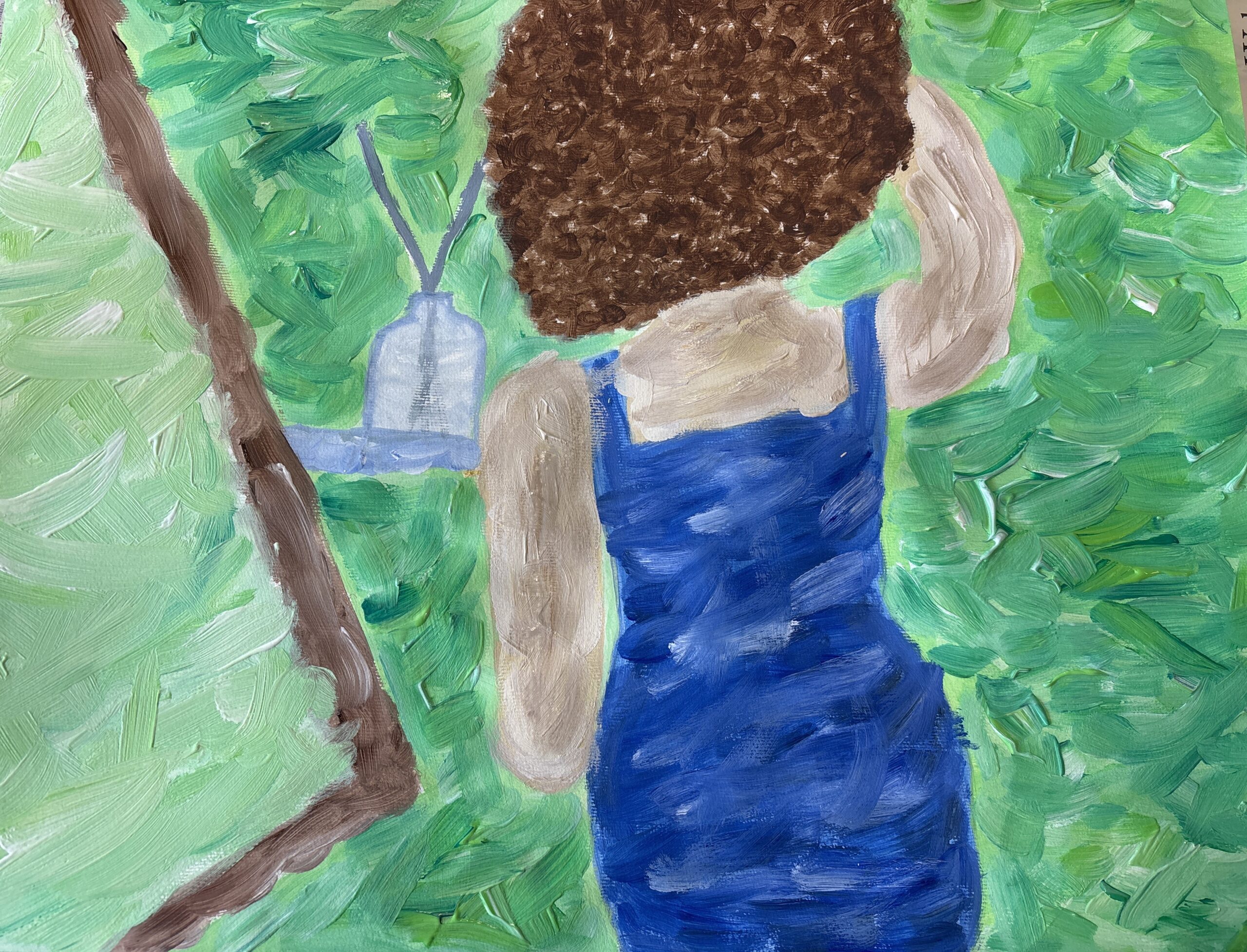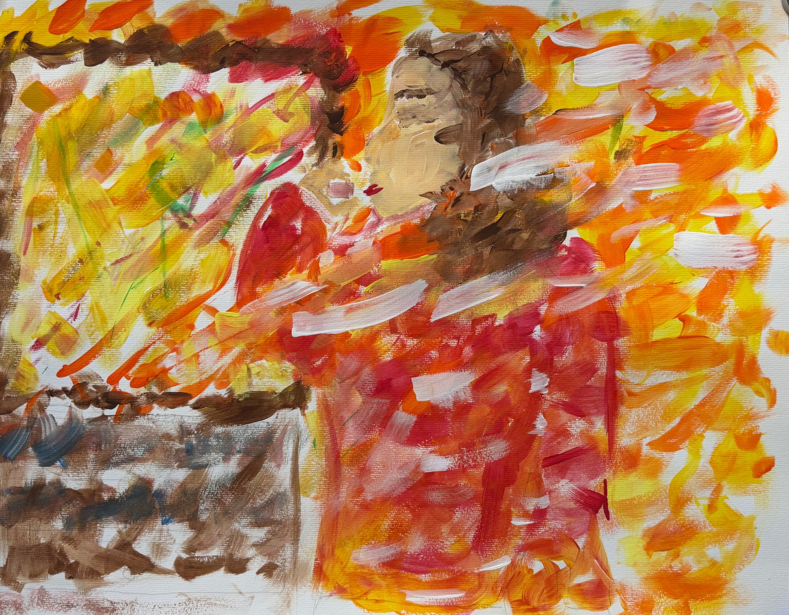- die Gestaltungskriterien des Impressionismus verwenden (sichtbarer Pinselduktus, angeschnittenes Motiv, kein Schwarz, keine Farbperspektive, Papieruntergrund darf an manchen Stellen sichtbar sein …, auch Figur in der Bildmitte positionieren)