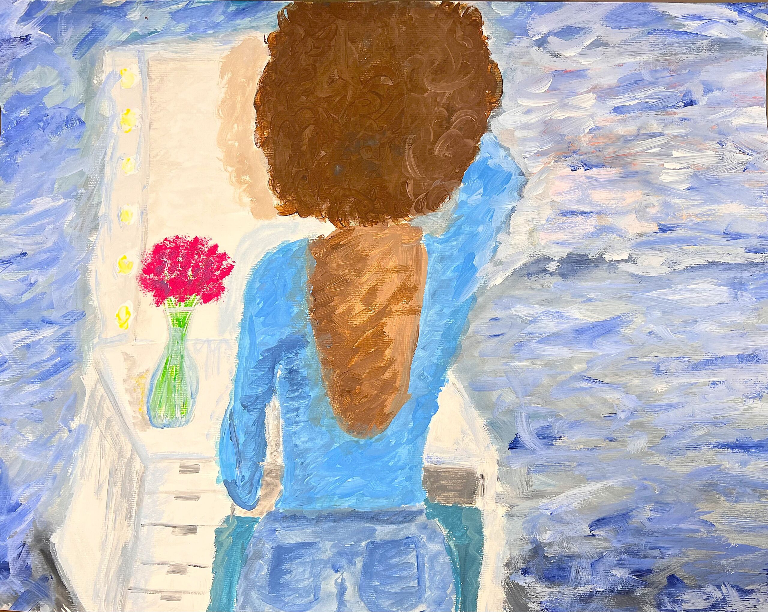 Entwickeln Sie Gestaltungsideen zu Berthe Morisots Werk „Jeune femme à sa toilette“ und setzen Sie eine Gestaltungsidee um, indem Sie: