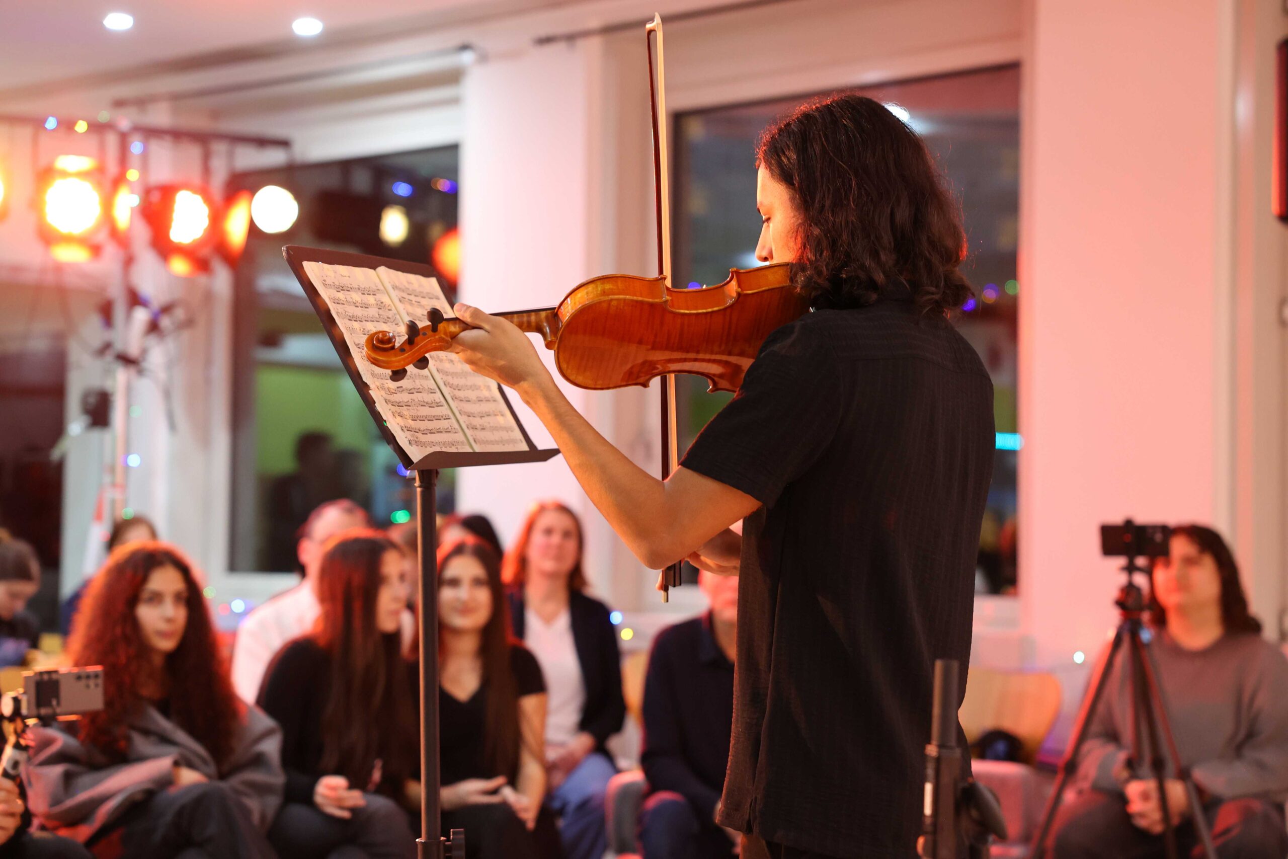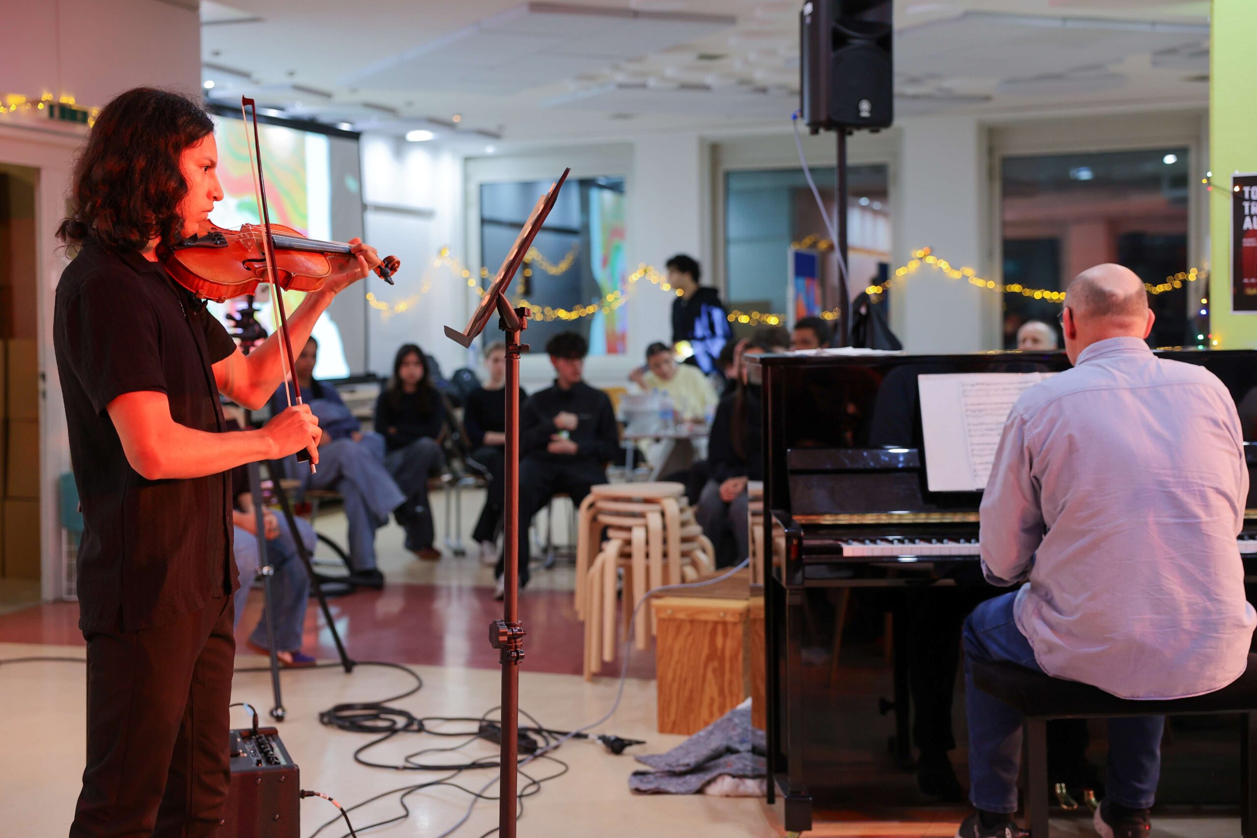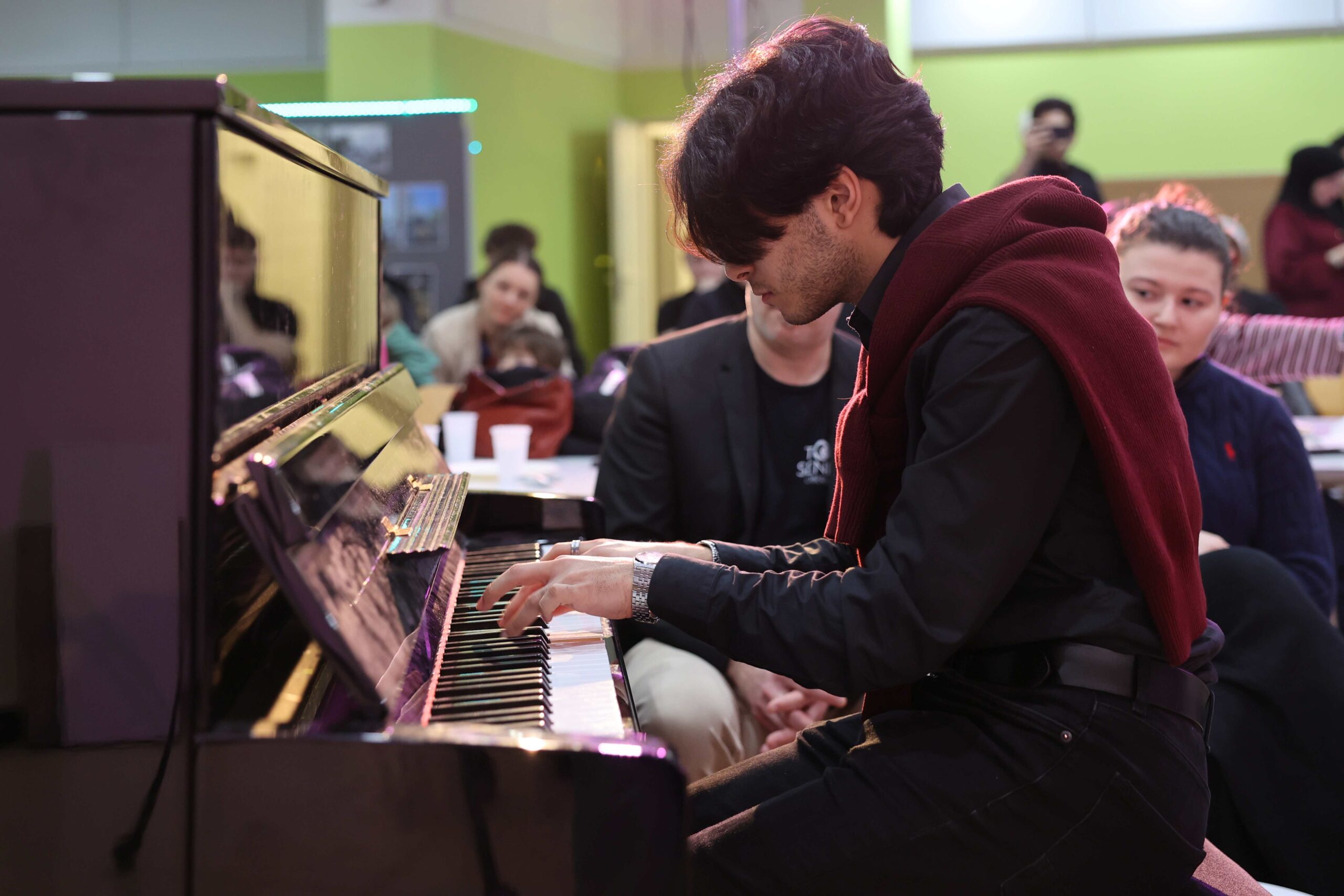 …während Mani Yazarlou (11a) am Klavier eine faszinierende musikalische Brücke zwischen Beethovens Mondscheinsonate und dem Soundtrack von Interstellar schlug.