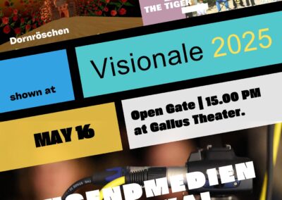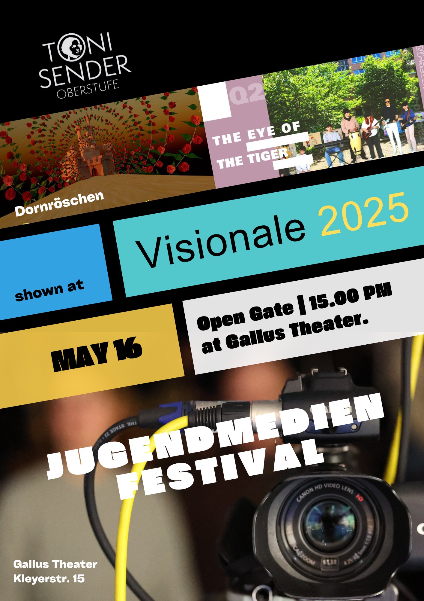 Die VISIONALE ist ein Jugend-Medienfestival, das vom Gallus-Theater, dem Jugend- und Sozialamt der Stadt Frankfurt und dem Medienzentrum Frankfurt veranstaltet jährlich wird. Die TSO nimmt 2025 mit zwei Filmen teil: „Dornröschen“ ca. um 15:05 Uhr und „Wir machen Musik in Musik (Eye of the Tiger)“ um ca. 17:00 Uhr. „Dornröschen“ ist aus einer Kooperation von DS und Kunst entstanden. „Wir machen Musik in Musik (Eye of the Tiger)“ ist aus einer gemeinsamen Produktion von Musik und DS hervorgegangen.